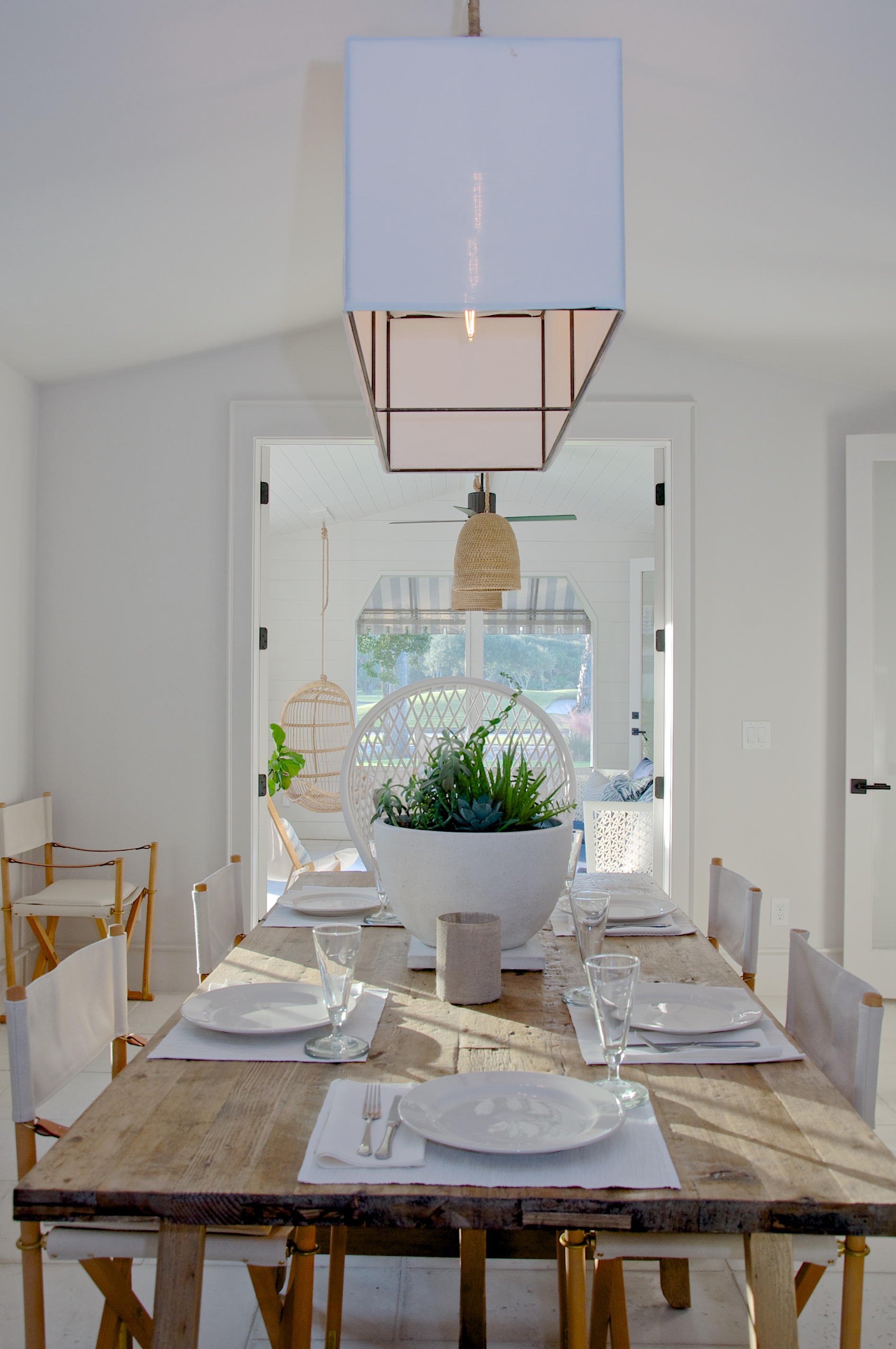 The raised ceiling makes it feel like a tent. The box linen shade adds further to the notion. Both Mary Lyn and T. F. were raised by working moms, who nonetheless produced a sit-down dinner at the end of each day. The tradition continues.