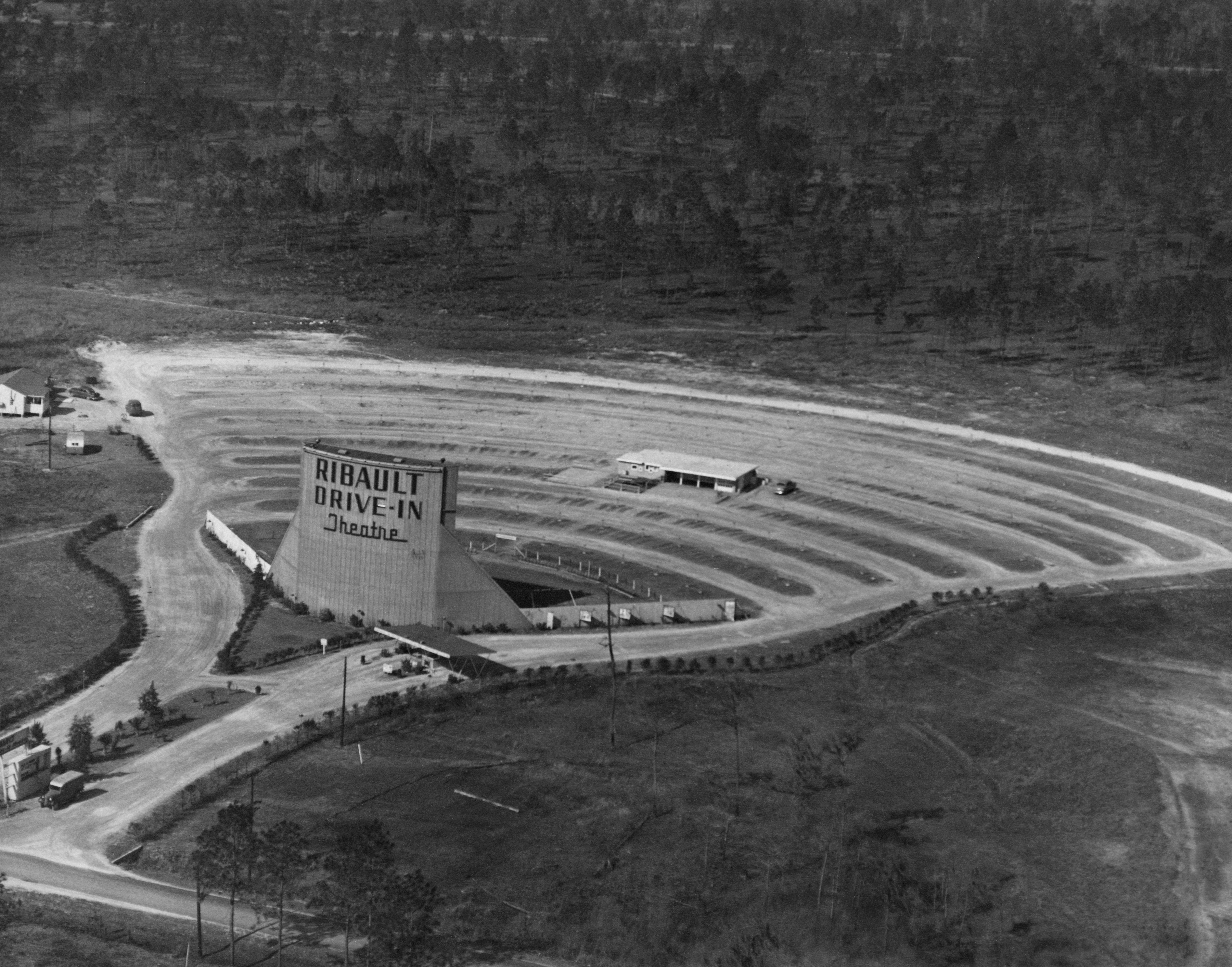 Jacksonville’s Ribault Theatre was one of the most popular local options during the 1950s. The theater, located at 4819 Soutel Dr., had one large screen and a 400-car capacity. Admission was $2 and popcorn was 30 cents (50 cents for those who wanted to splurge on butter). While its initial offerings were expansive, the Ribault eventually began showing exclusively R-rated films, in an attempt to compete with indoor theaters, which benefited from the comfort of air-conditioning. Ultimately, the Ribault couldn’t, shuttering to the public in the 1970s, briefly re-opening in 1981, and later torn down and replaced with a commercial building. Look closely on Google Maps, and you can still see the faint outline of the old parking area, now overgrown with trees.