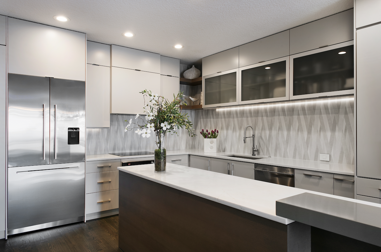 Use neutral shades in white, gray, brown or black. Texture and the use of modern elements such as concrete, glass and metals help to achieve the overall look and add depth and dimension. Details are in the lines and shapes and how they work together.