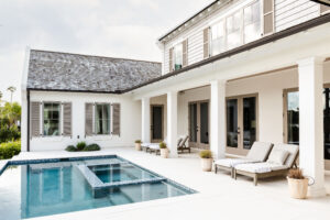From the moment you lay eyes on this property, you are greeted by interesting architecture and design. This beachside home stands out from the crowd with a blend of traditional coastal features, including a calming color palette, custom shutters and Mahogany wood door, alongside bold finishes such as a salt-finish concrete driveway and salvaged brick walkway, cedar shake roof, jewel palms and gas lanterns. The final product results from a collaborative effort between designer, builder and architect to create a home that turns heads.