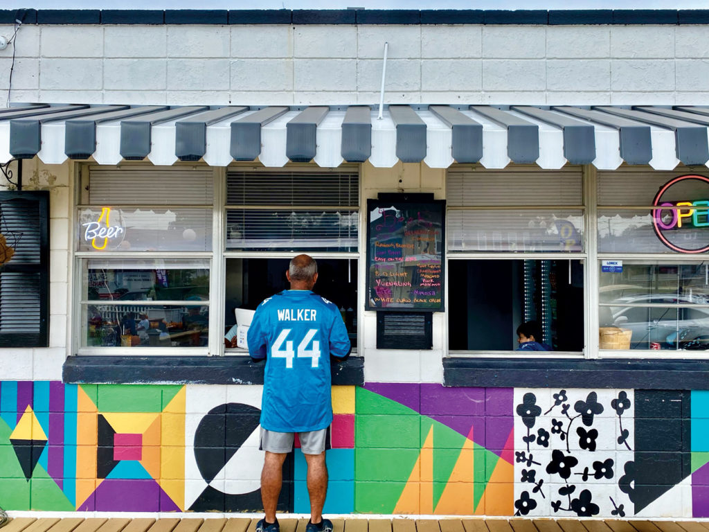 Since opening in October 2021, the space has hosted a number of events including live jazz performances, game nights, and a Harvest Jamboree fundraiser. With a rotating schedule of food trucks parked here, daily offerings range from grilled tacos to tikka masala. The newest addition to the park is a long-awaited food service building where guests can order beer, wine, pressed sandwiches, and more. In addition to their weekend soirées, the park also has a big screen where football fans can have Sunday brunch while the Jaguars play.